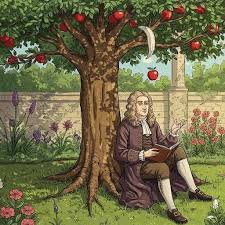 تقول الحكاية الشهيرة إن نيوتن، أثناء جلوسه في حديقة منزله، شاهد تفاحة تسقط من شجرة. لم يسأل فقط "لماذا سقطت؟"، بل تساءل "لماذا تسقط بشكل مستقيم ولا تذهب جانبيًا أو لأعلى؟".